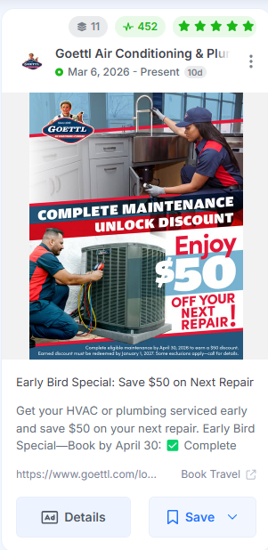 Spring and fall are the most receptive windows for roofing inspection outreach. A well-timed seasonal ad positions your company as helpful rather than opportunistic.