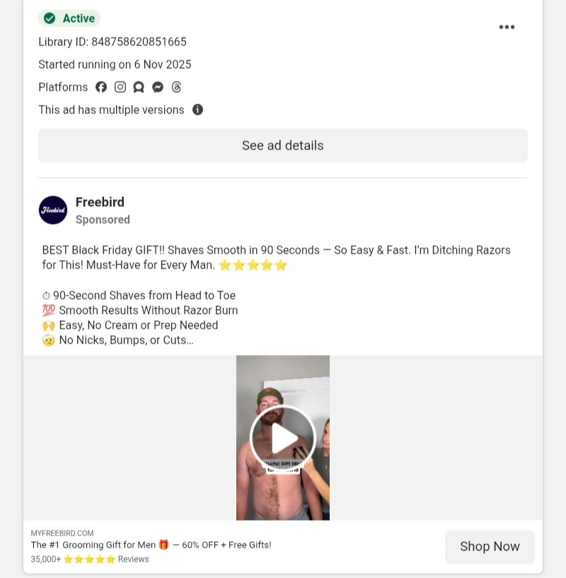 Bundle ads are one of the most underused Black Friday Facebook ad formats. Brands using AI-powered ad research to identify what competitors are bundling consistently report higher average order values than single-item discount campaigns
