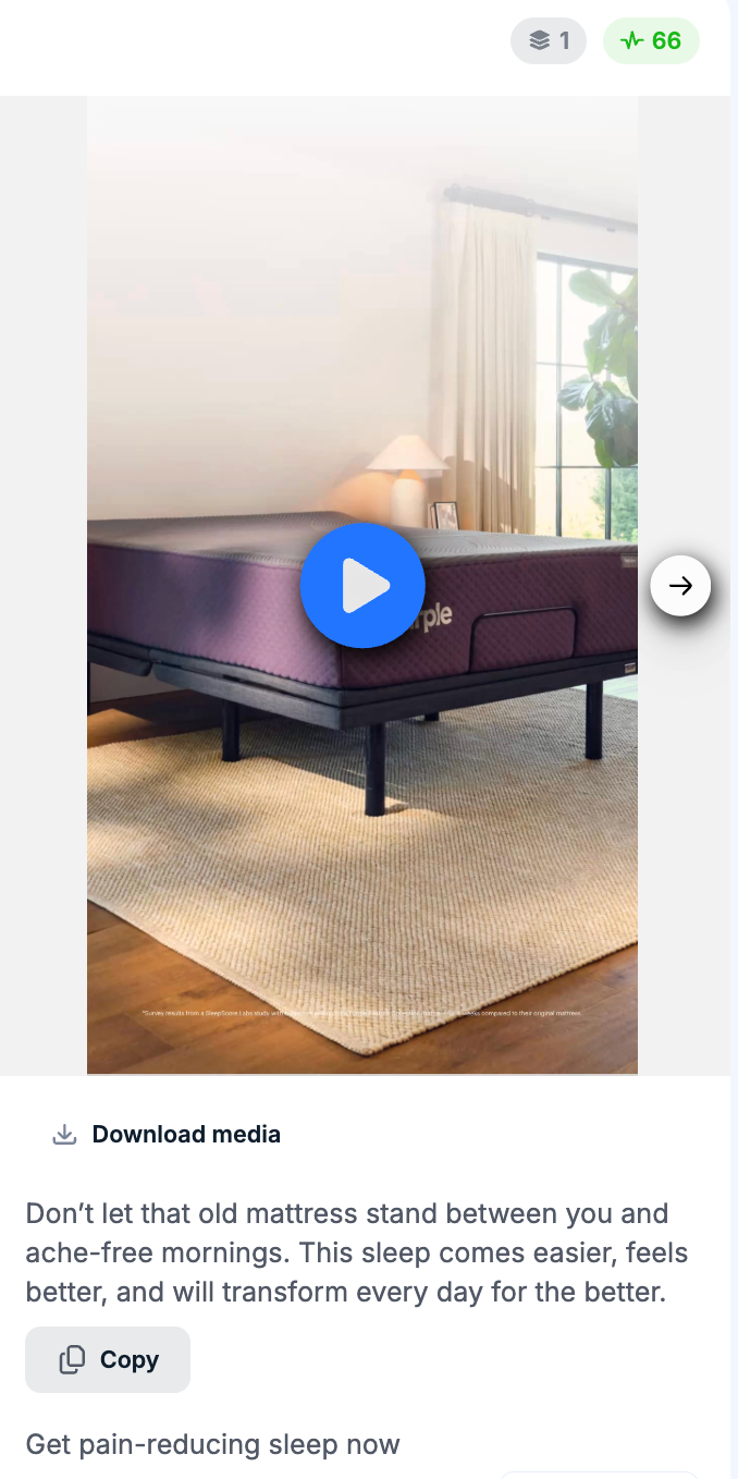 Purple's best-performing Facebook ads don't open with a mattress. They open with a problem: disrupted sleep, chronic back pain, mattresses that lose their shape within a year. By the time the product appears on screen, the viewer is already looking for a solution.