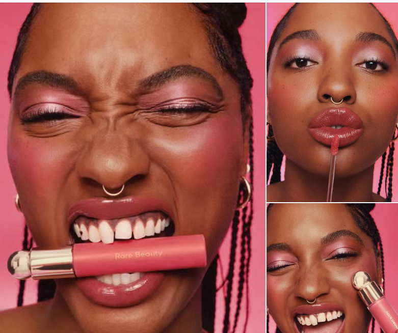 Rare Beauty uses the carousel format to introduce its new Soft Pinch Tinted Lip Oil. Each card showcases a different shade on a real person, letting shoppers see how the product looks on actual skin tones rather than just swatches.
