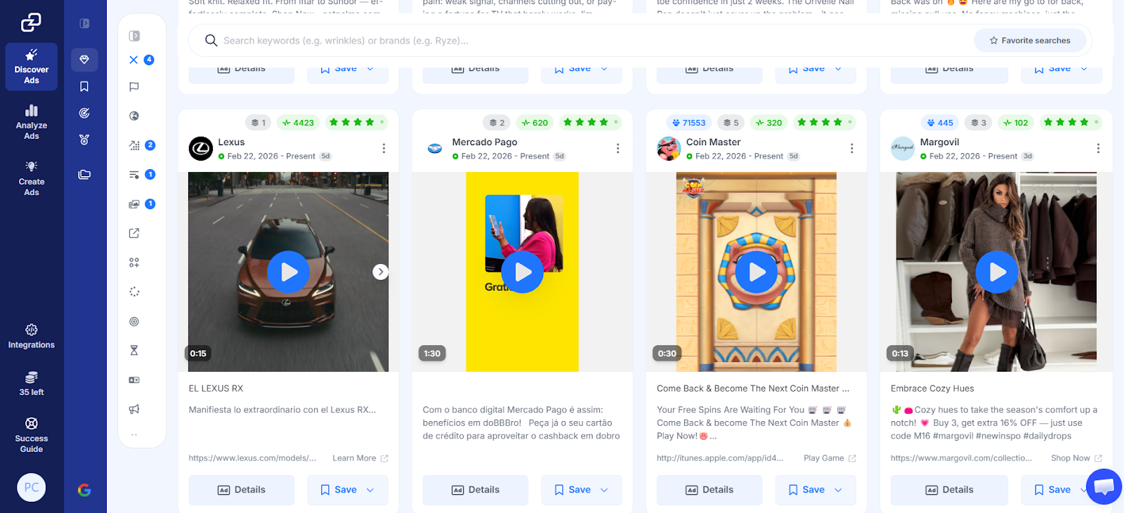 With Brand Spy, you can monitor the exact campaigns your competitors are investing in and monitor their strategies. Once you spot a high-performing concept, Ads Transcription breaks down the video ad into its component parts: the hook, the script flow, and the CTA, so you can see exactly what's driving clicks.