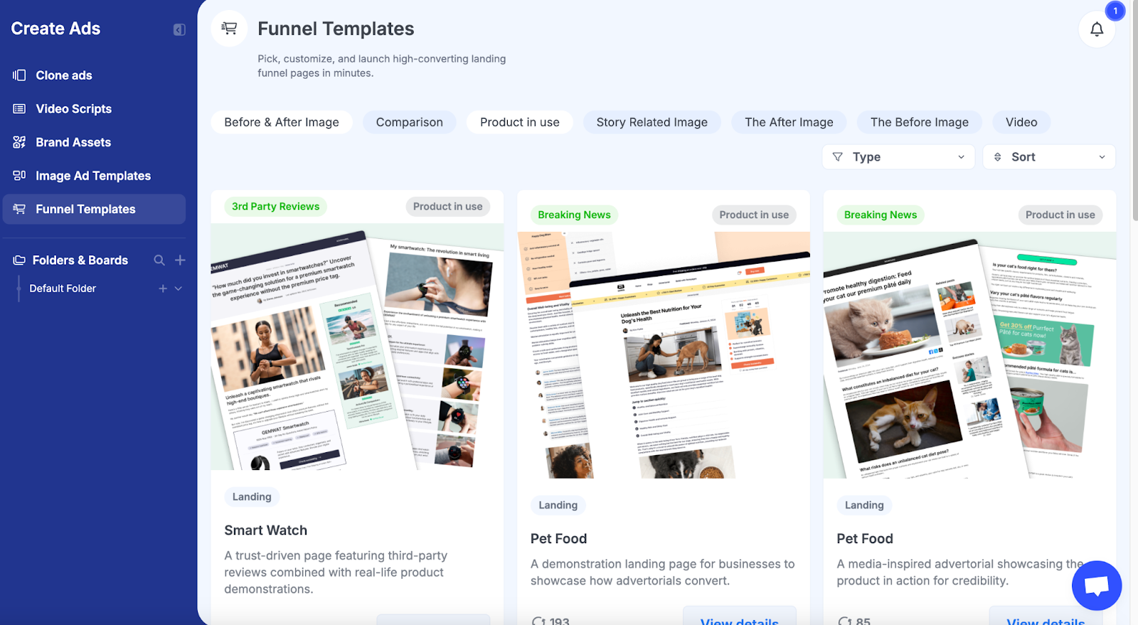 Skip the blank canvas. Our template library offers static ad designs tested and proven by top-performing brands across hundreds of niches. Pick a template, customize it to your offer, and launch with no design skills required.