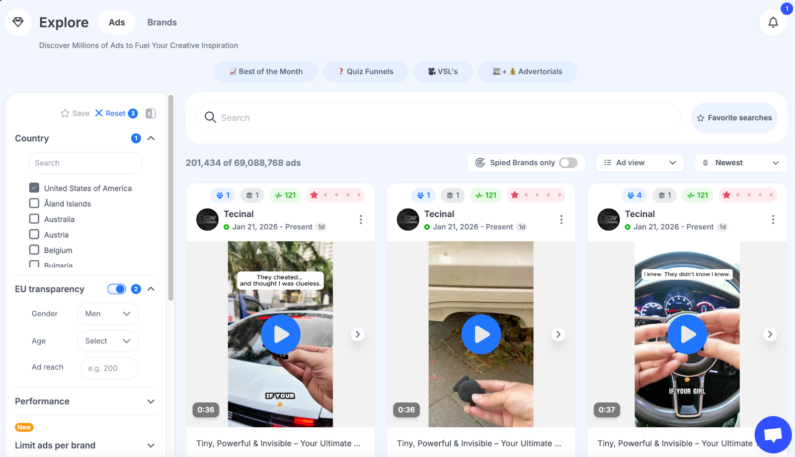 Our library contains more than 65 million ads from Facebook and Meta, enabling you to identify which creatives your competitors are actively investing in. This real-time competitive visibility gives marketers and agencies the strategic edge needed to make smarter creative decisions.