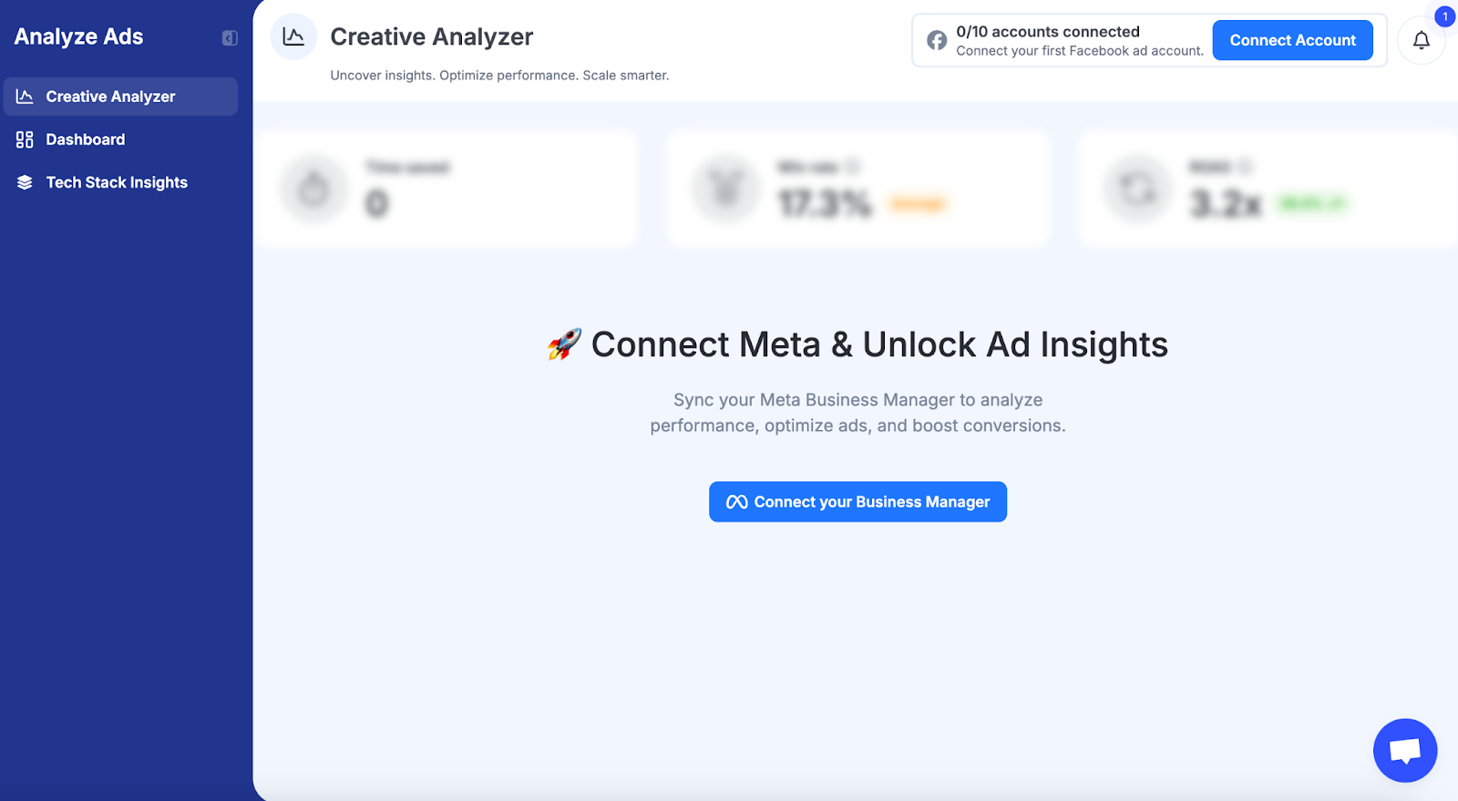 - Creative Analyzer: Connects to your Meta Business Manager to analyze ad performance at the creative level, showing you which ads to scale, which to cut, and what to improve.